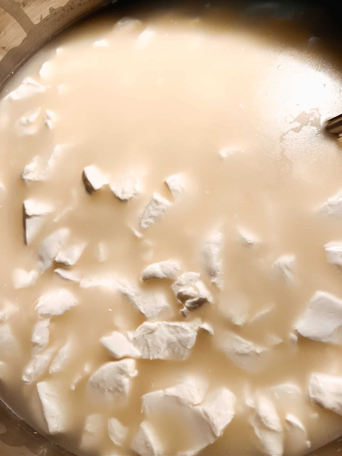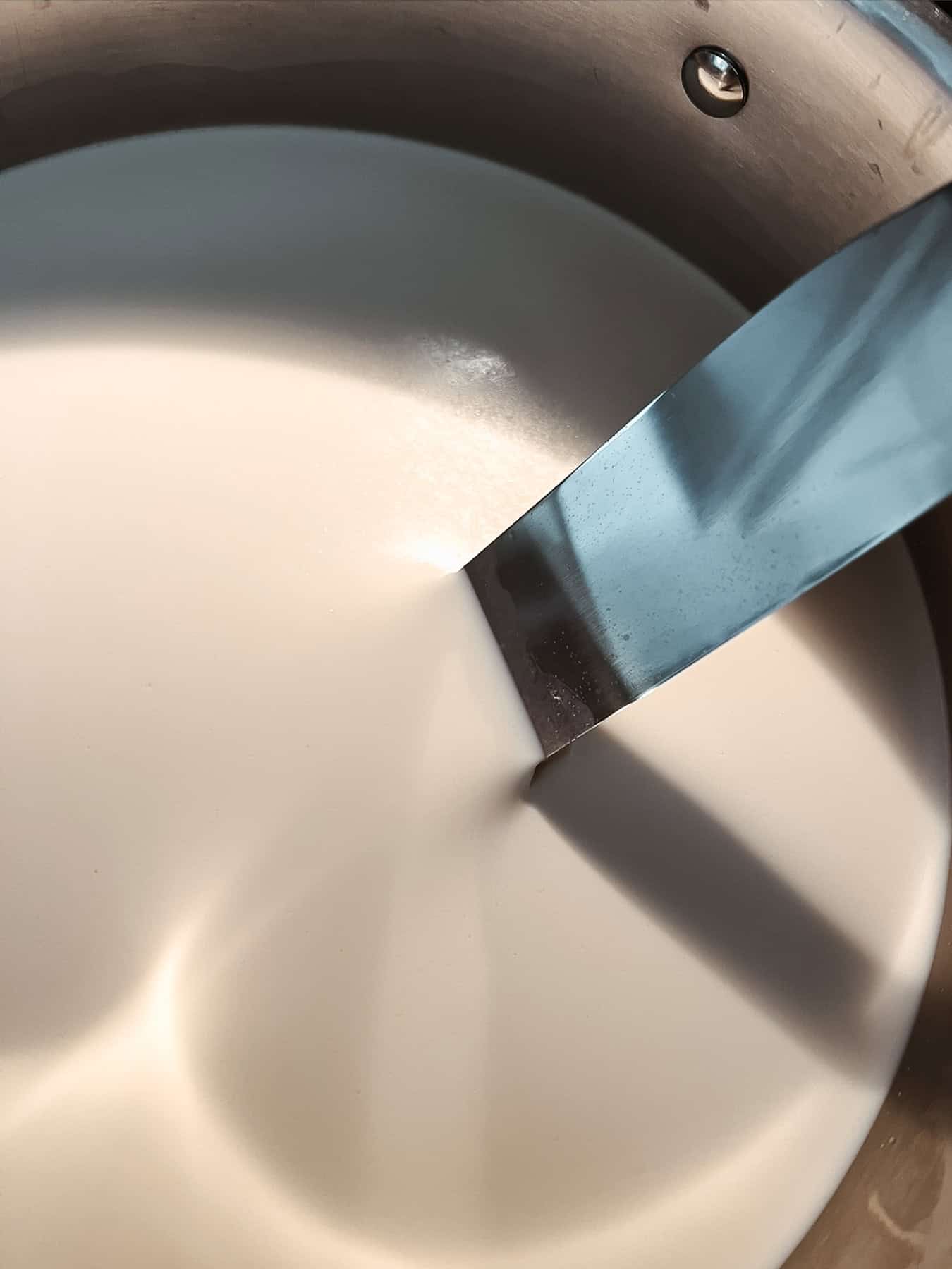 - Cook over medium/ low heat, stirring continuously. It will start to bubble.